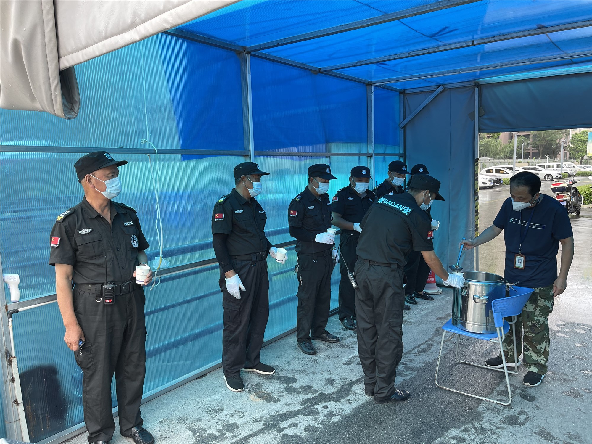 驕陽(yáng)下,公司員工、安保人員及志愿者持續(xù)奮戰(zhàn)在疫情防控一線,測(cè)溫、驗(yàn)碼、排查過(guò)往人員、車輛,全力做好疫情防控工作。雖然已是立秋天氣,室外仍然會(huì)覺(jué)得酷熱難擋,工作人員和志愿者一個(gè)個(gè)都熱得汗流浹背。 “綠豆湯熬得很濃稠,味道也不錯(cuò)?!焙戎@份充滿愛意的“清涼湯”,值守人員贊不絕口,稱贊的不僅僅是味道,更是助力戰(zhàn)“疫”的責(zé)任感和愛心。 撰稿:李佃左、張藝馨、攝像:李佃左