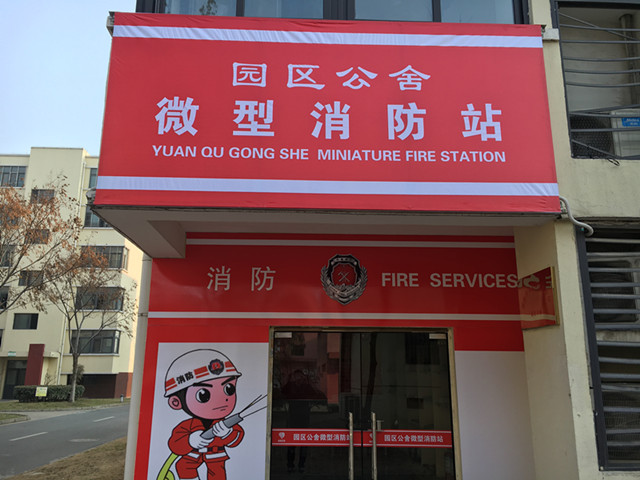 園區(qū)公舍微型消防站位于公舍8號樓,建發(fā)公司安保中心、安民物業(yè)保安員共同組建了6人制微型消防站,該站配備了基本的滅火器材及個人防護裝備,并實行24小時值守制度。