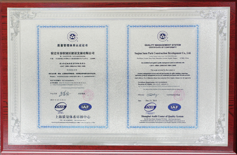 質(zhì)量管理體系認證證書